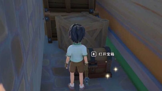 第二个宝箱在蓝月亮驿站的室外区域。从驿站正门出来,前方有一个露天的小阳台,宝箱就摆放在阳台的地面上。这个宝箱的位置相对明显,走过去就能看到。打开后可以直接获得50个金币,对于沙石镇时光前期的资源积累是一笔不错的补充。