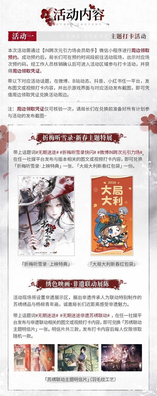 无期迷途「折梅听雪录」新春主题快闪活动2月7日开启~入此局中,见真江湖。新春限时活动「折梅听雪录」即将开幕,诚邀局长们踏雪入江湖,折梅赴新约,齐聚此间共迎新章。一起来和小编看看吧~