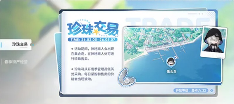 另一个重要的新增内容是“珍珠交易”系统。在完成“珍珠大调研”这一系列引导任务后,该系统便会解锁。珍珠需要在佩芮处购入,其每日的买卖价格会根据市场动态浮动。指挥官们可以通过低买高卖来赚取差价,也可以与出现的神秘商人进行限时交易。这个系统支持跨岛屿的珍珠流通,加强了不同岛屿之间的资源协同与策略联动。