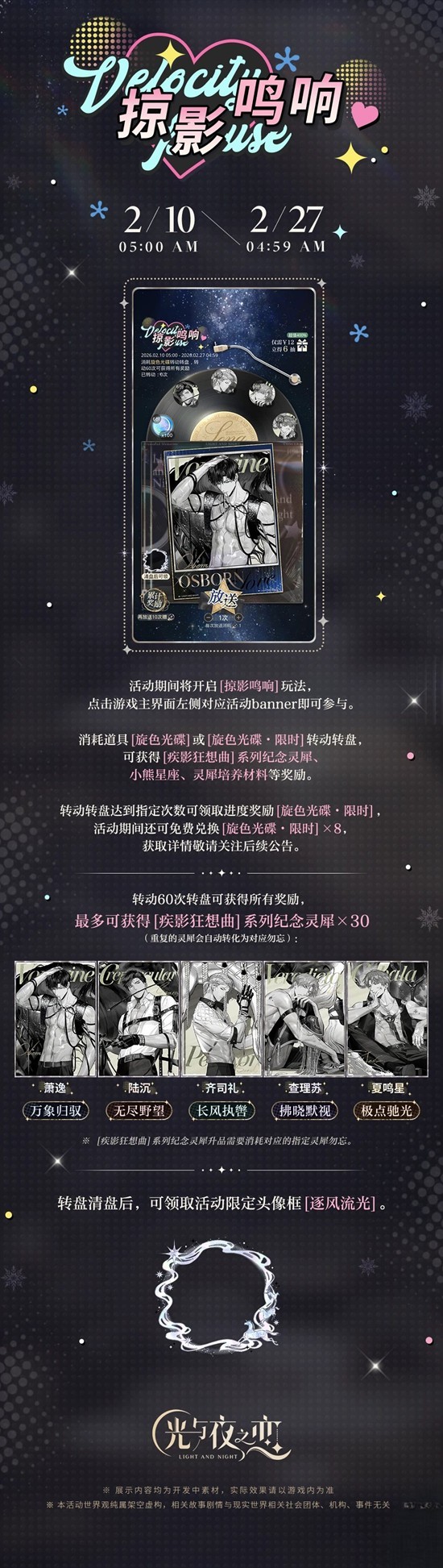 以上就是光与夜之恋掠影鸣响卡池,光夜小转盘怎么抽攻略的全部内容了,更多游戏资讯,攻略内容敬请关注切游网,您的支持是我们努力的动力!