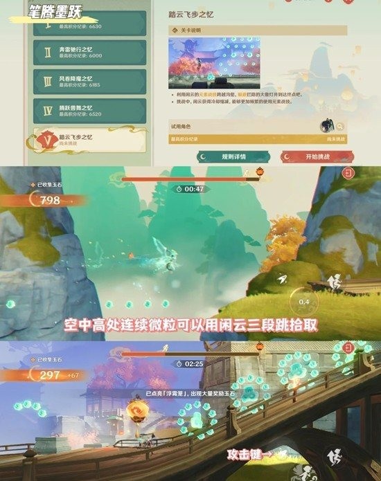 空中高处连续微粒可以用闲云三段跳拾取
