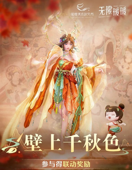 「壁上千秋色」联动活动包含联动任务「千秋色,壁上珍」与联动玩法「画壁还真」,完成联动任务「千秋色,壁上珍」后,将开启联动玩法「画壁还真」。活动期间完成可获得臂饰「妙音画中缘」、外套「妙彩画中天」、「大喵斗篷·飞天」、家具「壁上珍屏风」丰厚限时奖励。