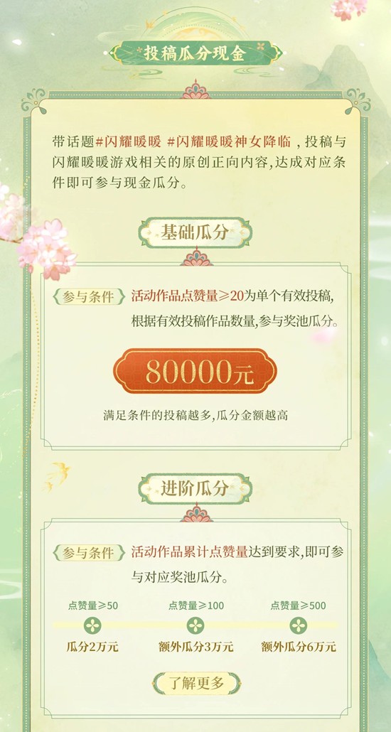 以上就是闪耀暖暖新春主题活动现已开启,参与投稿瓜分现金的全部内容了,更多游戏资讯,攻略内容敬请关注切游网,您的支持是我们努力的动力!