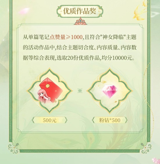 带#闪耀暖暖 #闪耀暖暖神女降临 ,发布与“神女降临”主题相符的相关笔记,即有机会参与评奖。