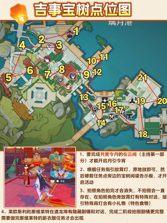 以上就是原神新春海灯节活动攻略,吉事宝树全点位在哪里分享的全部内容了,更多游戏资讯,攻略内容敬请关注切游网,您的支持是我们努力的动力!
