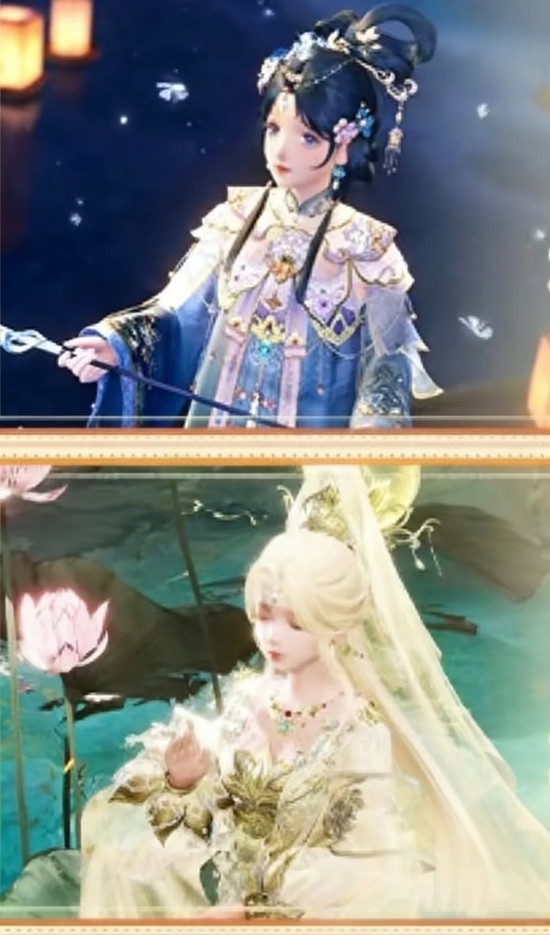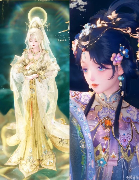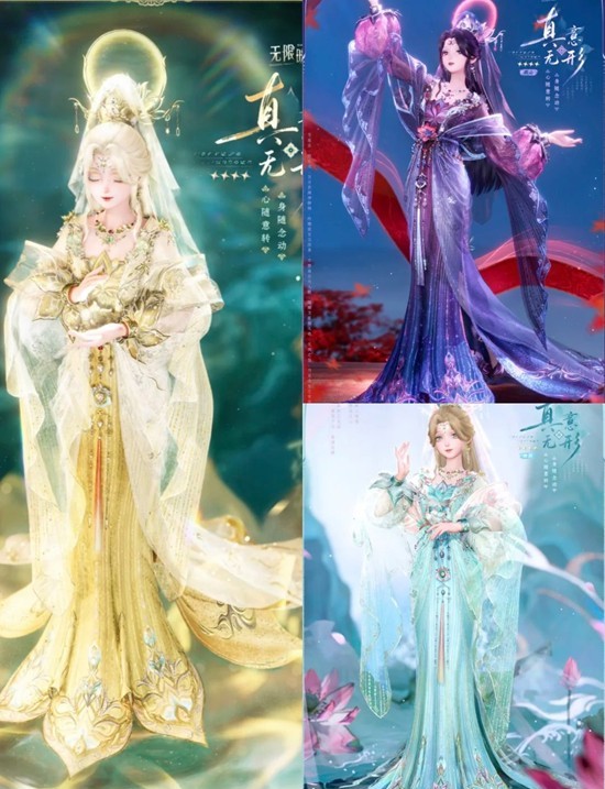 观音套的头纱感觉挺好的,不过是衔接在头冠上的还有个圈的特效不知道拆不拆分。也有袖子和外套,不过感觉可能是连在一起的,不好拆分吧