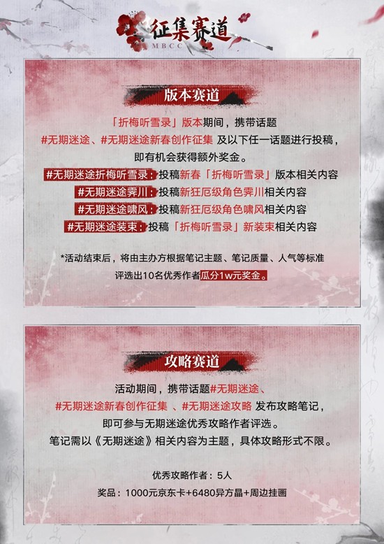 ☆版本赛道:带上话题词#无期迷途、#无期迷途新春创作征集及对应话题词发布笔记即可参与 。