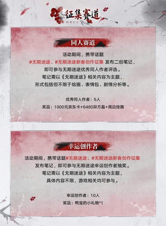 ☆同人赛道:带上话题词#无期迷途、#无期迷途新春创作征集发布笔记即可参与。