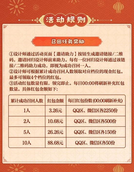 ④回归设计师也可以前往活动页面邀请其他回归设计师助力,完成召回任务领取红包奖励。