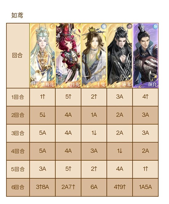 士燮二星有持伤加成,没有二星再多打一个回合即可,下回合颜a英↑燮a满a亮↓/a
