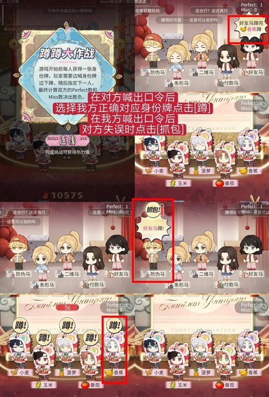 在我方喊出口令后对方失误时点击[抓包]。