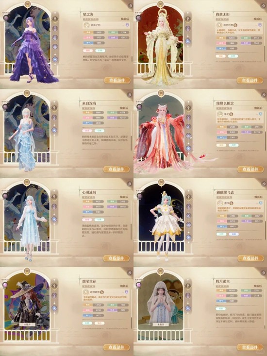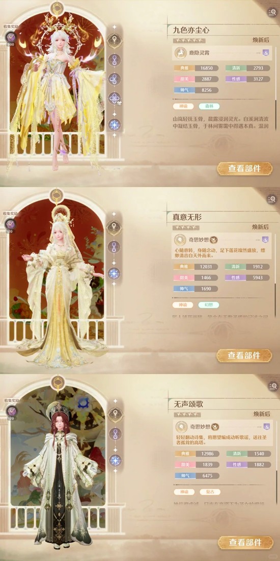 【幻想】套装有很多,这里除去纸鹤套,其余套装都只是符合【典雅】或者【性感】标签