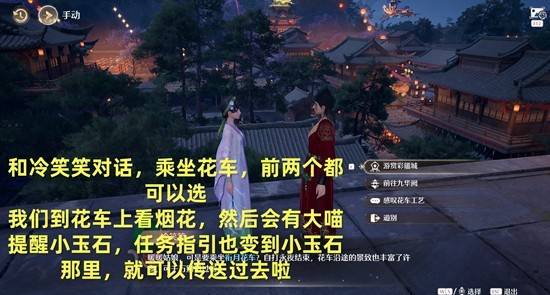 再去和小玉石对话,然后跟随指引,去花车站台,点击等待到深夜;