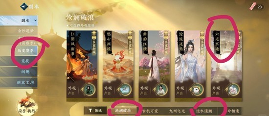 1.在副本界面历史赛季找到沧澜破浪、逆水逐潮赛季的团本,点进团本界面。
