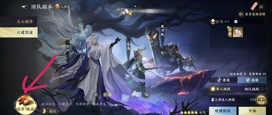 2.打开团本普通难度,进入后传送到第一个boss处对话速小问开启奖励罗彩匣的挑战,可以在开启界面同时开启三个boss的挑战。