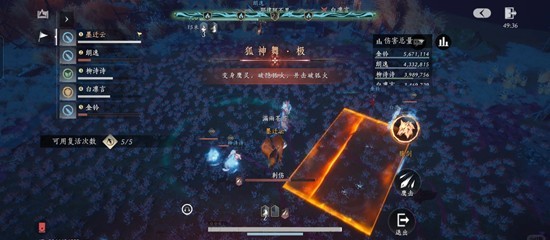 4.狐神舞——一个队友点鹰剑,变鹰然后用红框扫描场地,看到蓝火就攻击。其他所有人打掉被鹰攻击过的蓝火。一共有四个蓝火,对应boss血条上的四个图标。