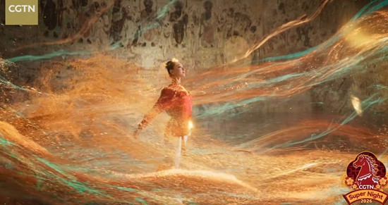 当这句来自王者荣耀"貂蝉·遇见胡旋"皮肤的台词在总台国际版春晚《CGTN超级夜看春晚》的舞台上响起时,一场跨越千年的文化对话正式开启。CGTN与《王者荣耀》联合推出的舞蹈节目《丝路胡旋》于今晚与央视春晚同步面向全球观众播出,以现代舞蹈艺术重新诠释敦煌胡旋舞的绝世风华。