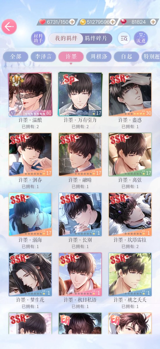 李泽言两张 许墨两张 白起一张