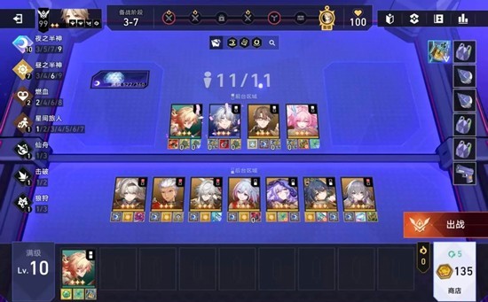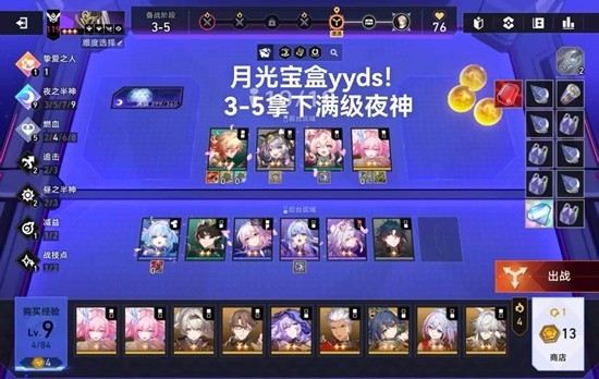 主包前期金币全部用来找人没金币升人口导致2-7才达成7夜神,最后3-7差3点能量满级夜神
