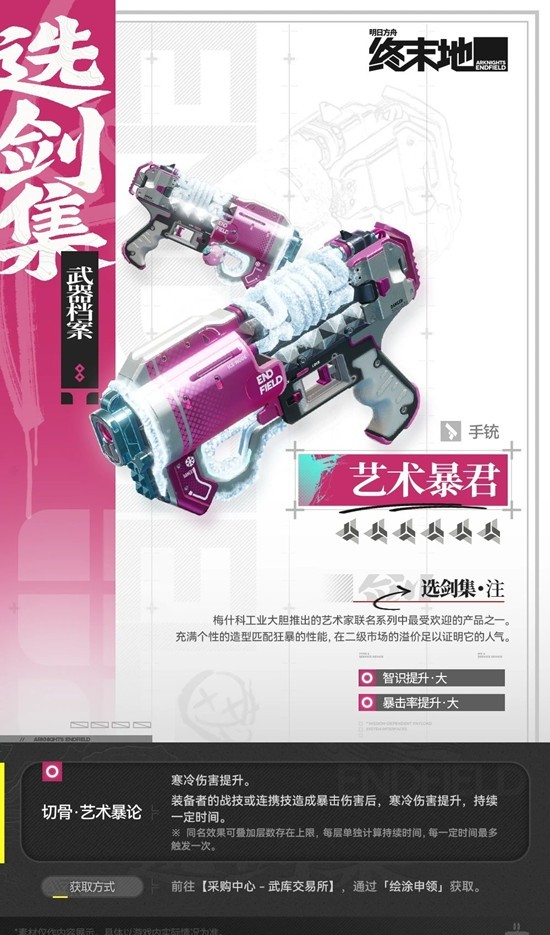 「绘涂申领」开放期间,6星武器【艺术暴君(手铳)】获取概率提升!