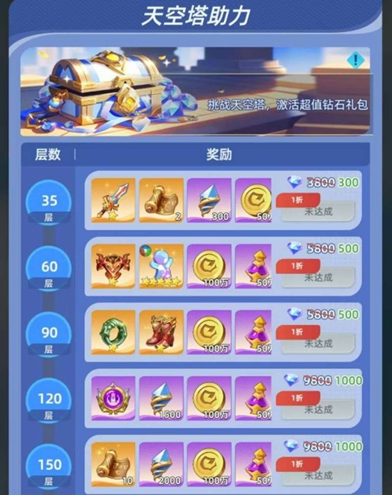当玩家爬塔达到某些特定的层数时,系统还会解锁名为“天空塔助力礼包”的限时购买项。这些礼包需要使用钻石购买,内含稀有装备、多种养成资源、黄金契约以及其他珍贵道具。对于钻石储备较为充裕的玩家而言,这些礼包的性价比较高,可以考虑购入以加速成长。但如果钻石资源紧张,则需谨慎权衡,毕竟钻石在神召大陆中用途广泛,需要合理规划使用。