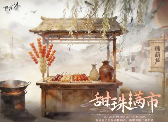 世界之外 特别活动「甜珠满市」是10号崩坍世界限时活动,2 月 25 日 08:00 至 3 月 4 日 03:59 开启。核心玩法为经营糖葫芦店铺,可免费解锁赛季故事。一起来和小编看看吧~
