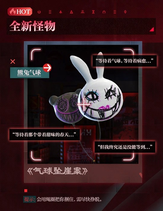 全新副本区域“玩具区”,怪物“熊兔气球”以及宝物“eggy游戏机”、“飞船模型”、“玩具卡车”上线,一起重温那场停在春天的梦。
