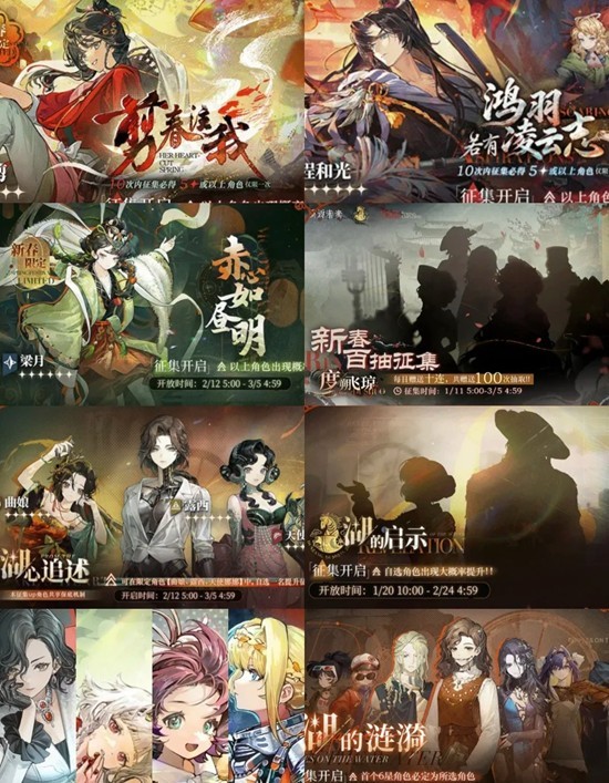 目前3.4在开的卡池有鹭鸶剪、度朔、程和光、梁月、限定3选1、纸圈、涟漪