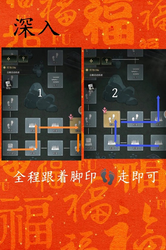 三任务条:不要被迷惑,遇到两边相同不要前进,直接回头到[入口]。