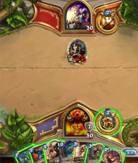 已用牌:战士用了个盾格过牌,牧师就下了个剑圣,没有标注手牌信息。