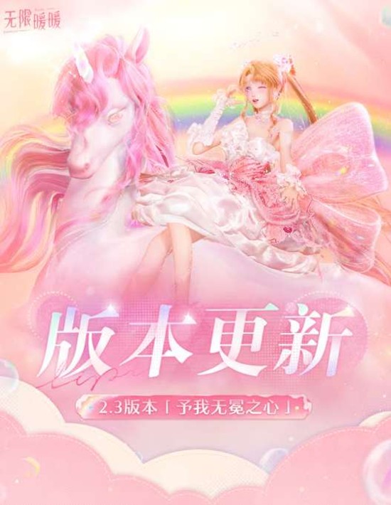 就在今天,开放世界换装冒险游戏《无限暖暖》正式迎来2.3版本「予我无冕之心」全球同步更新!本次版本以"完美偶像冠军庆典"为主题,带来了备受期待的扩建常驻玩法、全新童话风独立关卡「甜霜梦屿」、多重福利活动以及丰富的全新套装。