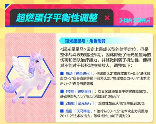 部分超燃蛋仔迎来强度调整。根据此前更新规律,开发组持续监控各英雄在竞技场中的表现数据,对强度超出预期或不及预期的角色进行数值回调与补强,确保对战环境的多样性与公平性。具体调整内容涵盖技能伤害、冷却时间、基础属性等多个维度,蛋仔们可前往游戏内训练场查看详细的英雄调整说明。