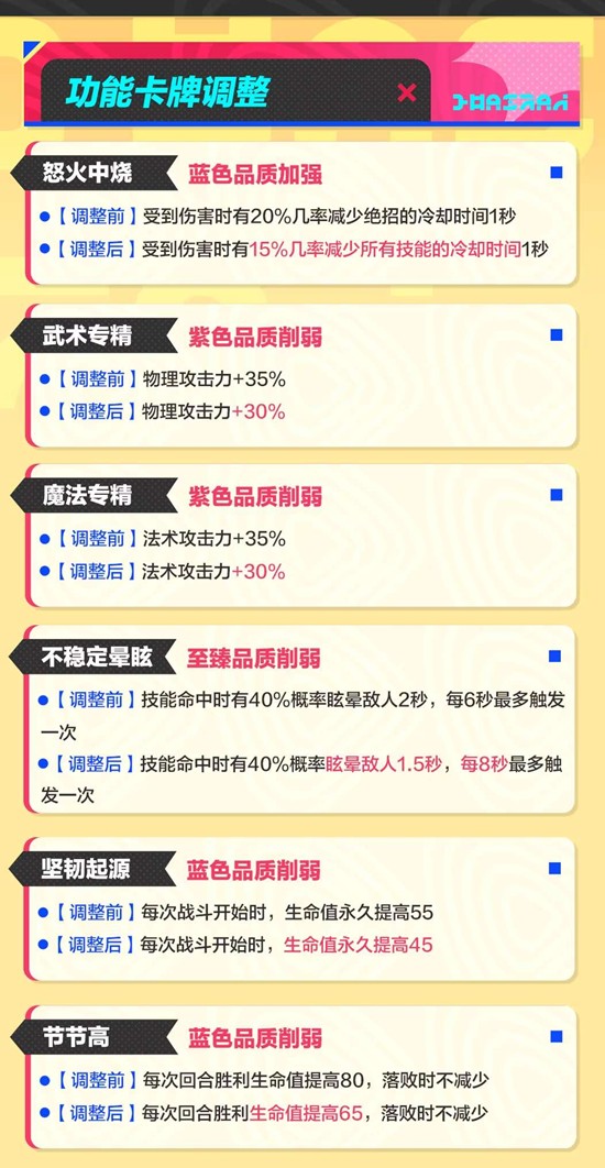 ✦功能卡牌品质与数值调整