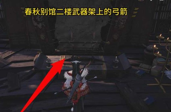 传送至春秋别馆,进入主建筑后前往二楼大堂。在房间内的桌子上可以直接拾取装备悬剑·碎纹雕弓。这是追溯的前提条件,必须先拿到这件物品才能进行后续操作。