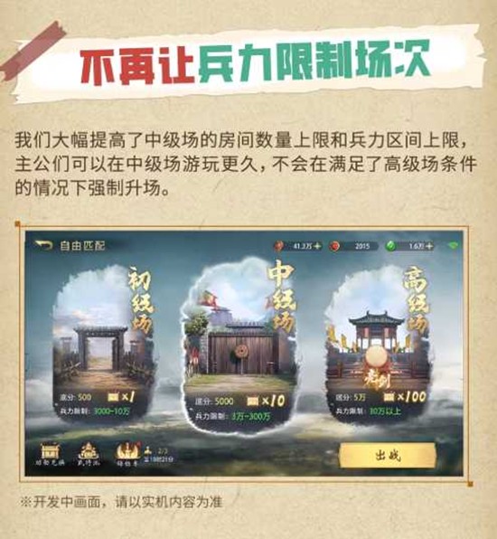 中级场扩容:大幅提高中级场的房间数量上限和兵力区间上限。
