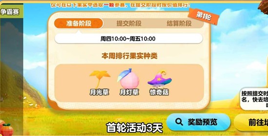 第一轮较量将在月光草、月灯灯、惊奇菇这三类特色果实中率先展开!农场主们需要提前做好准备,培育出品质最优的参赛果实,在第一轮就抢占先机!