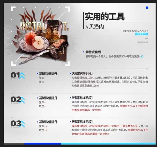 阶段01:攻击与攻击速度提升,天赋【药剂扩散】自身受到的治疗量+20%。