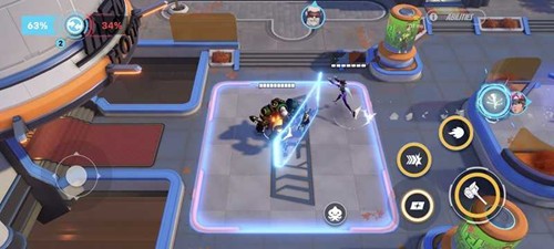 当前游戏实装的英雄共有7位,涵盖了莱因哈特、法老之鹰、死神等标志性角色。这些英雄的技能设计精准提炼了端游的精髓。法老之鹰的“震荡冲击”技能可以提供短时的无敌帧,用于规避关键伤害。死神的“幽灵形态”则支持无冷却的位移突袭,能帮助团队快速撕开对手的防线。