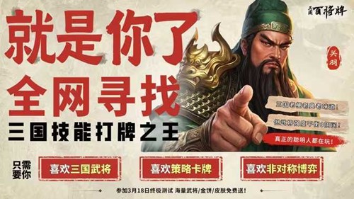 主公们请注意!《三国:百将牌》官方今日宣布,"再牌一把"终极测试将于明日(3月18日)10:00正式开启!本次测试支持iOS、Android(含模拟器)与PC端三端数据互通,预下载已于今日(3月17日)10:00抢先开启。