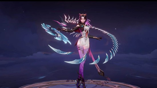 发型上,猫耳型双髻盘发搭配不对称挑染粉紫的长发,可爱中带着肆意。最引人注目的是其武器设计——由琴键幻化而来的锋刃,处处藏锋,当听者沉醉于乐曲时,莫测的变局也正悄然而至。