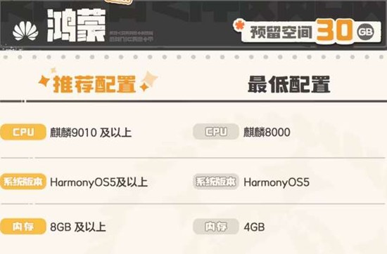 最低配置:麒麟8000处理器,HarmonyOS 5系统,4GB内存。