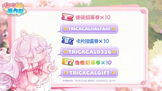 本次嘟嘟脸游戏恶作剧纪念版本为圣团长们准备了三枚珍贵兑换码,分别是TRICKCALHALFANI、TRICKCAL0326以及TRICKCALGIFT。这些兑换码由嘟嘟脸女王埃尔芬亲自下令放出,旨在庆祝即将到来的纪念版本。每组代码都蕴含着不同的福利内容,领取后可获得水晶叶等实用资源,助力各位在异世界冒险中更加顺畅。