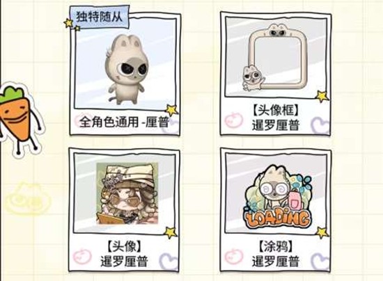 对于购买了同系列其他联动时装的访客(【奇珍时装】"囚徒"-比格多栋、【奇珍时装】调酒师-兔子秀珍、【奇珍时装】律师-张田中、【奇珍时装】小丑-鹈鹕小河),在达成对应行盲盒全开启条件时,还可额外领取该时装对应的独特随从、头像框、头像及涂鸦奖励。