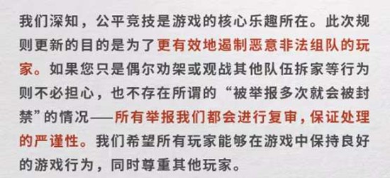 官方强调,所有举报都会经过人工复审,确保处罚的准确性。处罚机制针对的是恶意非法组队行为,而非正常的战场偶遇或临时性中立互动。玩家在正常游戏过程中遇到的偶然情况,不会被视为违规。