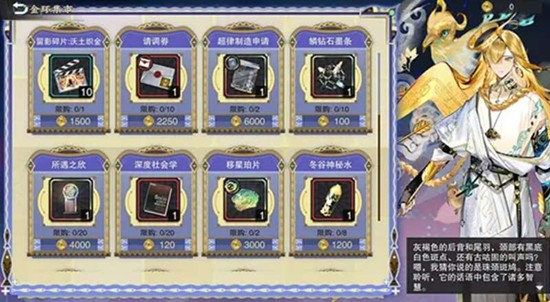 “金环集市”是使用鱼鸟金铢兑换资源的地方。可以兑换的道具包括留影碎片:沃土织金、请调券、所遇之欣、移星珀片等。其中,留影碎片和请调券的兑换优先级较高,其他资源可以根据自己的培养需求来灵活选择。