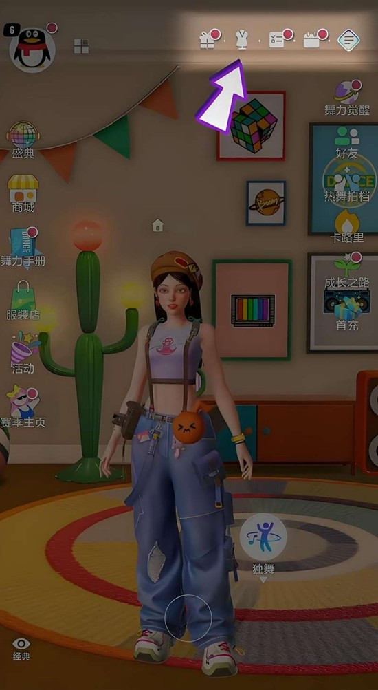 舞力全开派对的衣橱系统入口位于游戏主界面的右上角,图标是一个衣架的轮廓,点击即可进入。在这个专属的造型空间里,玩家可以自由组合上百种服饰部件,包括发型、上装、下装以及各种配饰和特效外观。所有的装扮都可以实时预览,方便玩家在每场舞力全开派对开始前,精心打造属于自己的独特舞台形象。