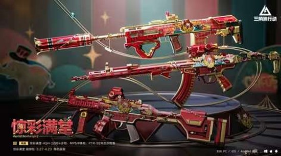 赤红之息,惊彩现世。腾讯旗下战术射击游戏《三角洲行动》全新「惊彩满堂」系列外观今日正式公布实录视频,以极致华丽的美学风格为硬核战场注入别样风采。该系列将于3月27日(明日)至4月23日期间限时上架,为特战干员们提供兼具视觉张力与收藏价值的全新装备选择。