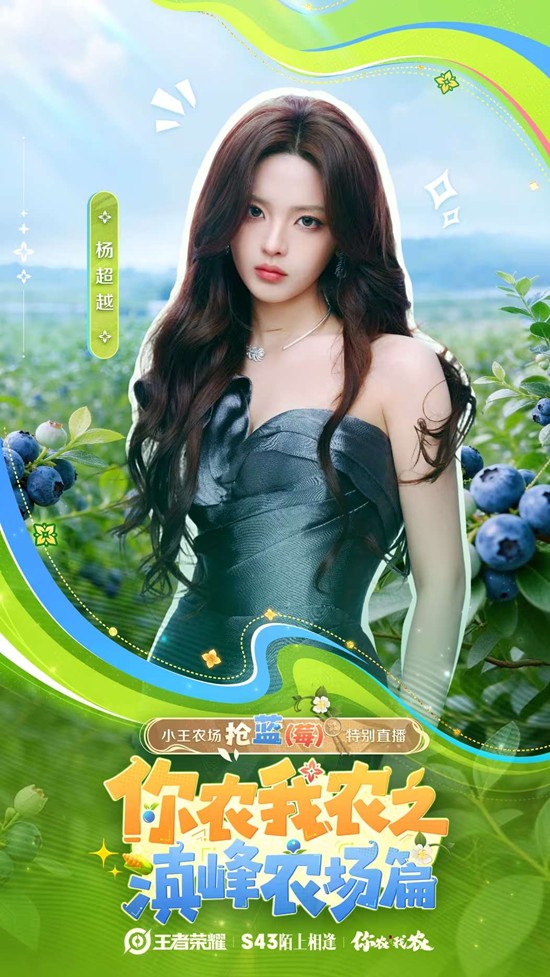 明日15:00,锁定王者荣耀官号直播间,看杨超越、杨迪、刺痛、乔兮等主理人在云南农场"抢蓝(莓)"大战!准备好瓜子饮料,一起见证策划能否完成100斤蓝莓KPI,也提前为你即将在峡谷里开垦的"小王农场"取取经吧!