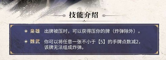 魏武技能允许玩家将手中任意一张点数大于或等于5的牌减少2点。调整后的牌虽然不能组成炸弹,但这正是化腐朽为神奇的关键。通过降低点数,原本散乱的牌可能瞬间组成顺子、连对或飞机等连贯牌型。这个技能的核心价值在于打破僵局,当手牌结构不佳时,魏武能提供重新规划的空间,让废牌变成有效战力。