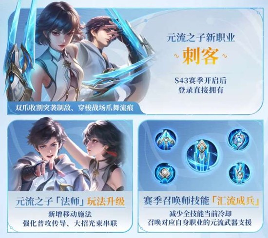 4月1日,《王者荣耀》S43新赛季「陌上相逢」正式开启,元流之子全新职业【刺客】正式上线!这位掌握"流"之力的英雄迎来第五种职业形态,以凌厉的爪舞流痕穿梭战场,为峡谷带来全新的战斗体验。